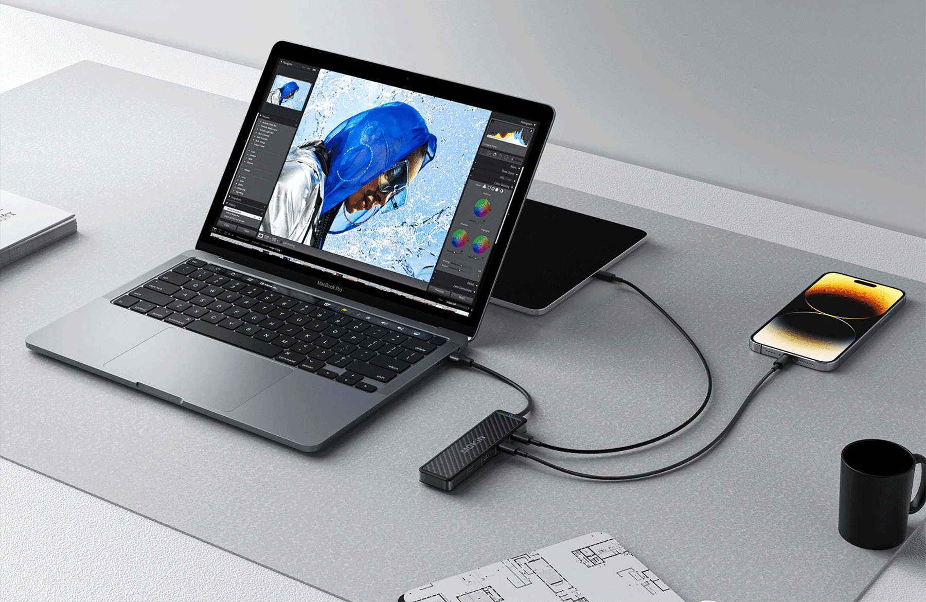 This multifunctional hub ensures lightning-fast data transfer, supports 4K HDMI, and has an SD card reader, making it an ideal companion for professionals and content creators.